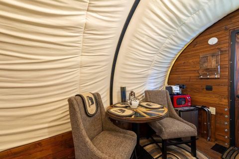 Imagine sleeping under the stars in a charming, fully-equipped covered wagon! It's an unforgettable blend of rustic charm and modern comfort, perfect for a romantic escape.
