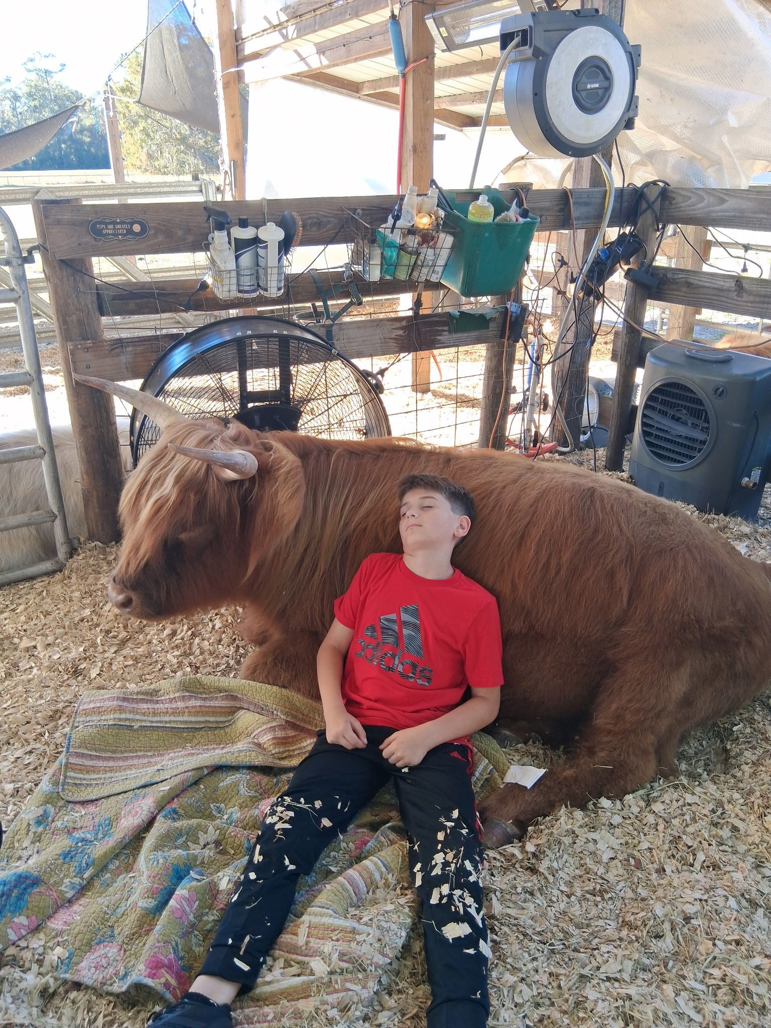 Jett our Highland steer is super special and it is a very rare opportunity to get to touch, hug and take pictures with one of these beautiful, fluffy cows. Spending time with Jett is a very, very special opportunity to get pics with this sweet little guy who is as gentle and sweet as the day is long. Jett is not safe for kids.