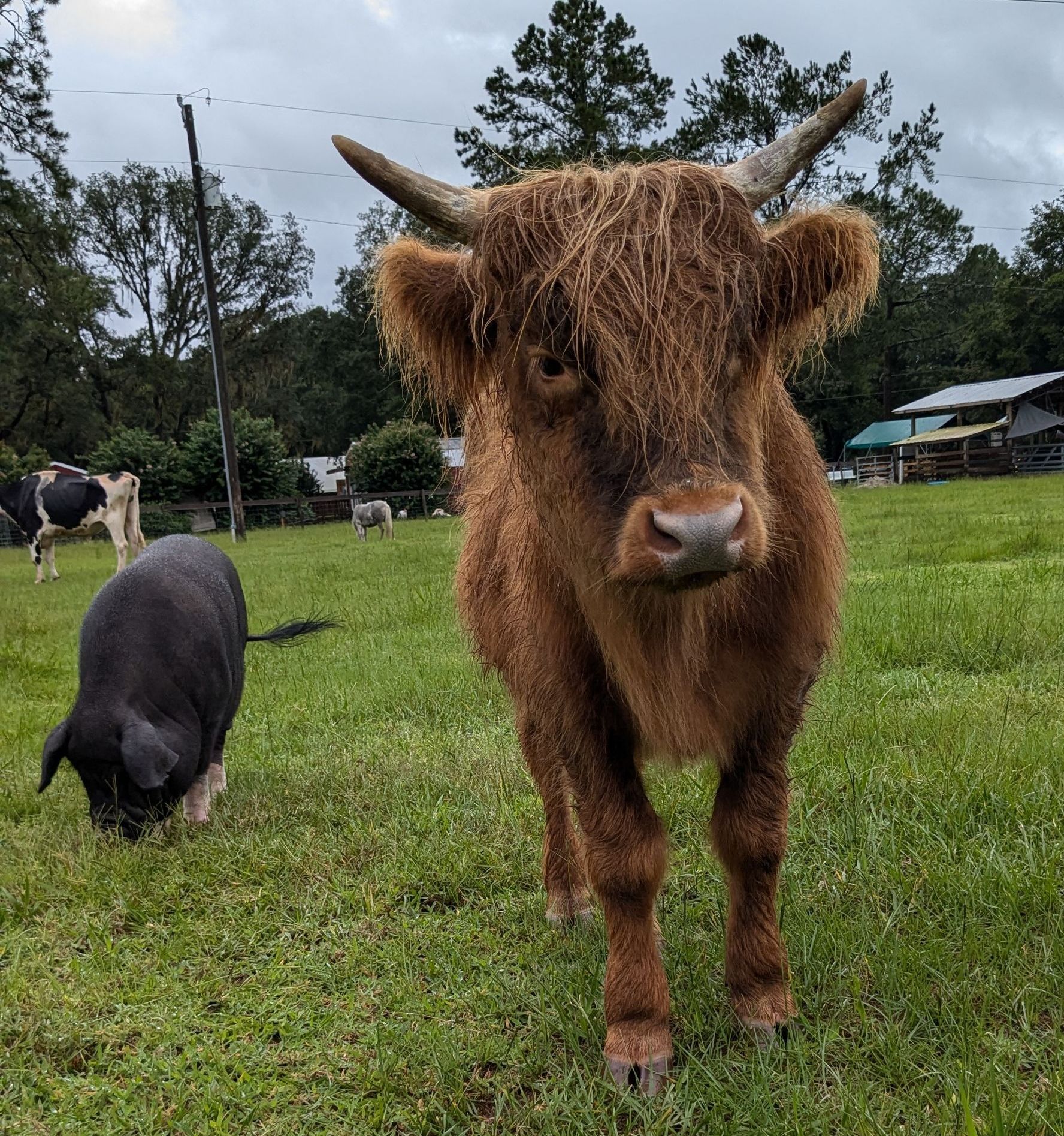 Our Highland Cow: Jett who is absolutely a fluffy and cute doll! He is a magnificent version of a classic Highland cow. We'll spend about 10 min with him before heading out to visit the ladies in the pasture.