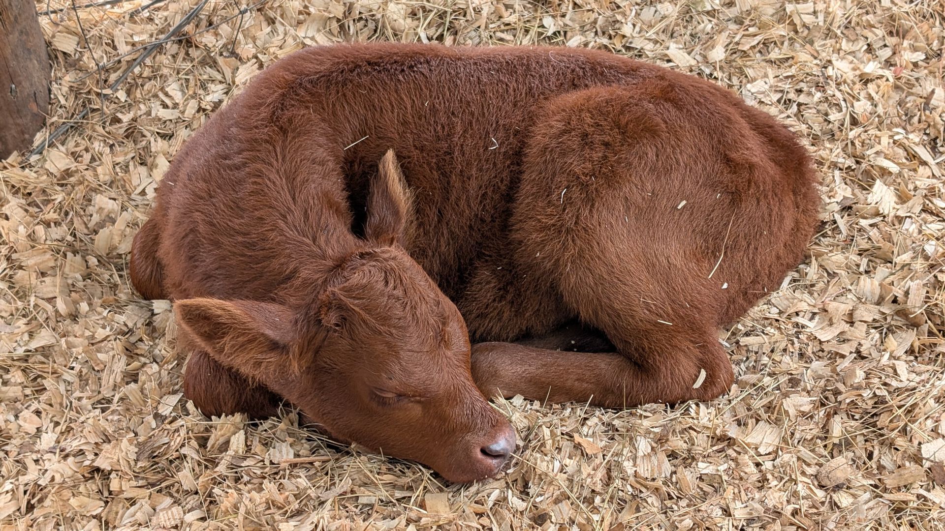 Zoey – The next littlest one, a beautiful all-red calf. She can be a little shy since she’s still new, but with patience she’ll happily lean in for scratches, pets, and her favorite treat—bananas!